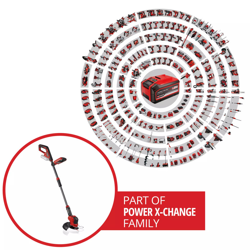 Ez a GE-CT 18/25-1 Li-Solo akkus szegélynyíró egy erőteljes gyepápoló kerti szerszám minden olyan területre, ahová a fűnyírója nem ér el. Az Einhell Power X-Change család tagjaként ez a szegélynyíró a rendszersorozat bármely akkumulátorával és töltővel kombinálható. A motorfej 180°-ban elforgatható és 3 pozícióba dönthető, így még a kert nehezen elérhető területein is könnyedén elvégezhető a gyepápolás. A szegélynyíró funkciónak köszönhetően még a gyep szélei is tökéletesen nyírhatók. A virágvédő megfelelő távolságban tartja a szerszámot a virágoktól és dísznövényektől. Ez az akkus szegélynyíró a mellékelt késsel és a damillal is működtethető. Speciális kialakításának köszönhetően a vágási mód néhány lépésben megváltoztatható a vágófej orsóval ellátott damilfejre cserélésével. A fokozatmentesen állítható teleszkópos alumínium vezetősínnek és a kiegészítő állítható fogantyúnak köszönhetően a szegélynyíró minden felhasználó magasságához igazítható a kényelmes kezelés érdekében. A kiegészítő fogantyú beépített praktikus tárolórekesszel rendelkezik, amely akár 20 műanyag pengét is elfér, amelyek szintén a szállítási terjedelem részét képezik. Az akkus szegélynyíróhoz egy extra damiltekercset is mellékelünk. Akkumulátor és töltő nélkül szállítjuk. Ezek külön kaphatók.