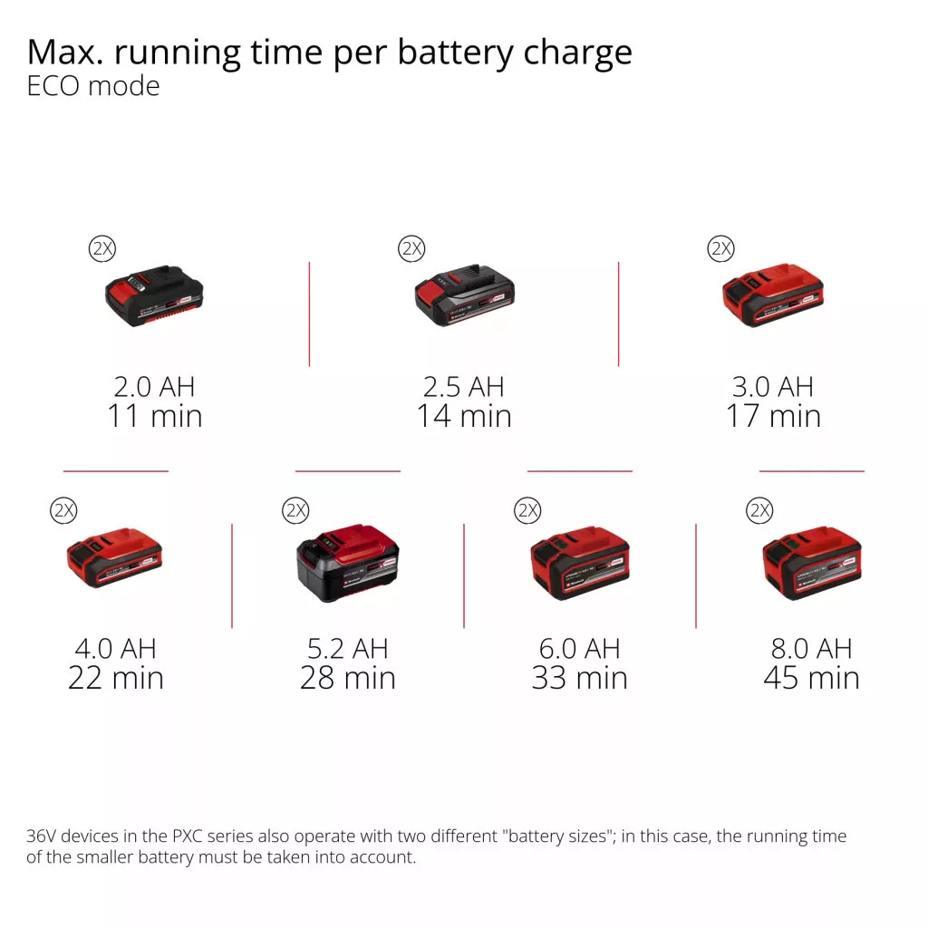 Az Einhell HYPRESSO 36/105 akkus magasnyomású tisztító vezeték nélküli rugalmasságot kínál a kert és a terasz hatékony tisztításához. Az Einhell Power X-Change család tagjaként ez az akkus magasnyomású tisztító a rendszersorozat bármely akkumulátorával és töltővel kombinálható. A gépet egy Einhell szénkefe nélküli motor hajtja. Ez a szénkefe nélküli motor nagyobb teljesítményt és hosszabb üzemidőt biztosít, mint egy hagyományos szénkefés motor. Online regisztráció után 10 év garancia jár a szénkefe nélküli motorra. A maximálisan megengedett 105 bar nyomással és akár 270 liter víz/óra áramlási sebességgel az akkus magasnyomású tisztító hatékonyan eltávolítja a szennyeződéseket a terasz- és kerti bútorokról, kerti szerszámokról, kerékpárokról, szemeteskukákról és sok másról. A Twin-Pack technológiának köszönhetően ezt a magasnyomású tisztítót két 18 V-os Power X-Change akkumulátor táplálja, a töltöttségi szintet a házba integrált központi LED akkumulátorjelző mutatja. ECO módban az energiafogyasztás csökken, ami meghosszabbíthatja az akkumulátor üzemidejét. Az integrált akkumulátorfedél védi az akkumulátorokat a fröccsenő víz és a por ellen. Az akkus nagynyomású tisztítóhoz tartozik egy szórópisztoly, egy hosszabbító lándzsa, egy hegyes/széles sugárú fúvóka, valamint egy rotoros fúvóka és egy mosókefe. A tartozékok helytakarékosan tárolhatók a házba integrált tartozékrekeszekben. A praktikus, könnyű készülék a hordozófogantyú segítségével könnyen szállítható. A tartozékok és a tömlők gyorsan és egyszerűen csatlakoztathatók egy gyorscsatlakozó rendszer segítségével. A nyomótömlő 4 m hosszú, az 5 m hosszú szívótömlő pedig vízszűrővel van felszerelve, így esővízgyűjtő hordókból, vödrökből, tavakból és hasonlókból is felszívhat vizet. A szívótömlőhöz rögzített habgolyó biztosítja, hogy a tömlő munka közben a megfelelő víztartályban maradjon. A HYPRESSO 36/105 akkus nagynyomású tisztító akkumulátor és töltő nélkül kerül szállításra. Ezek külön megvásárolhatók.