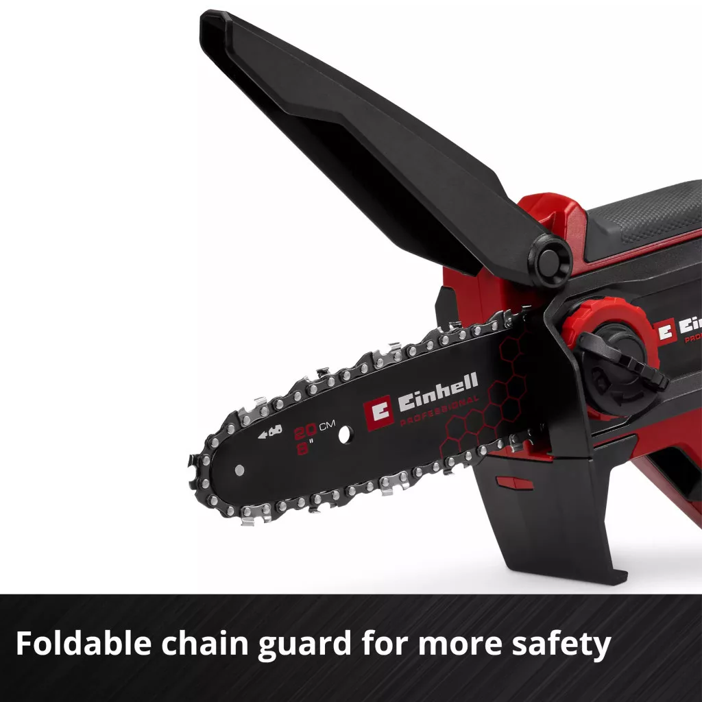 Az Einhell Professional GP-PS 18/20 Li BL-Solo akkus metszőfűrész egy sokoldalú és praktikus eszköz fák és cserjék nyírásához, valamint zöldnyesedék aprításához és kisebb favágási munkákhoz. A Power X-Change család tagjaként a rendszersorozat bármely akkumulátorával vagy töltővel együtt használható. A szerszámot egy Einhell szénkefe nélküli motor hajtja. Ez a szénkefe nélküli motor nagyobb teljesítményt és hosszabb üzemidőt biztosít, mint egy hagyományos szénkefés motor. Online regisztráció után 10 év garancia jár a szénkefe nélküli motorra. A 19,2 cm-es vezetősínhosszal és a 15 cm-es vágási hosszával a kisméretű és könnyű akkus metszőfűrész tökéletes a rugalmas kerti használatra. A hatékony motor minimalizálja a rezgést, és akár 8 m/s láncsebességet is lehetővé tesz. A szállítás tartalmaz egy kiváló minőségű vezetősínt és lánckészletet, amely precíz vágásokat és optimális munkaeredményeket tesz lehetővé. A láncfűrész karbantartása, például a vezetősín és a lánc cseréje, valamint a láncfeszesség beállítása, különösen egyszerű, és a forgókapcsolónak köszönhetően szerszám nélkül is elvégezhető. A beépített kézvédő és az összecsukható láncvédő biztonságot és rugalmasságot biztosít. Az ergonomikus kialakítás keskeny fogantyúval, puha markolattal és kétkezes használatra szolgáló kéztámaszfelülettel nagyfokú kényelmet biztosít. A vezetősín-burkolat védi a készüléket tárolás közben. Az automatikus lánckenés tiszta utántöltéséhez olajtölcsér található a csomagban. A szállítás nem tartalmaz akkumulátort vagy töltőt, de ezek külön megvásárolhatók, például kezdőkészletként.