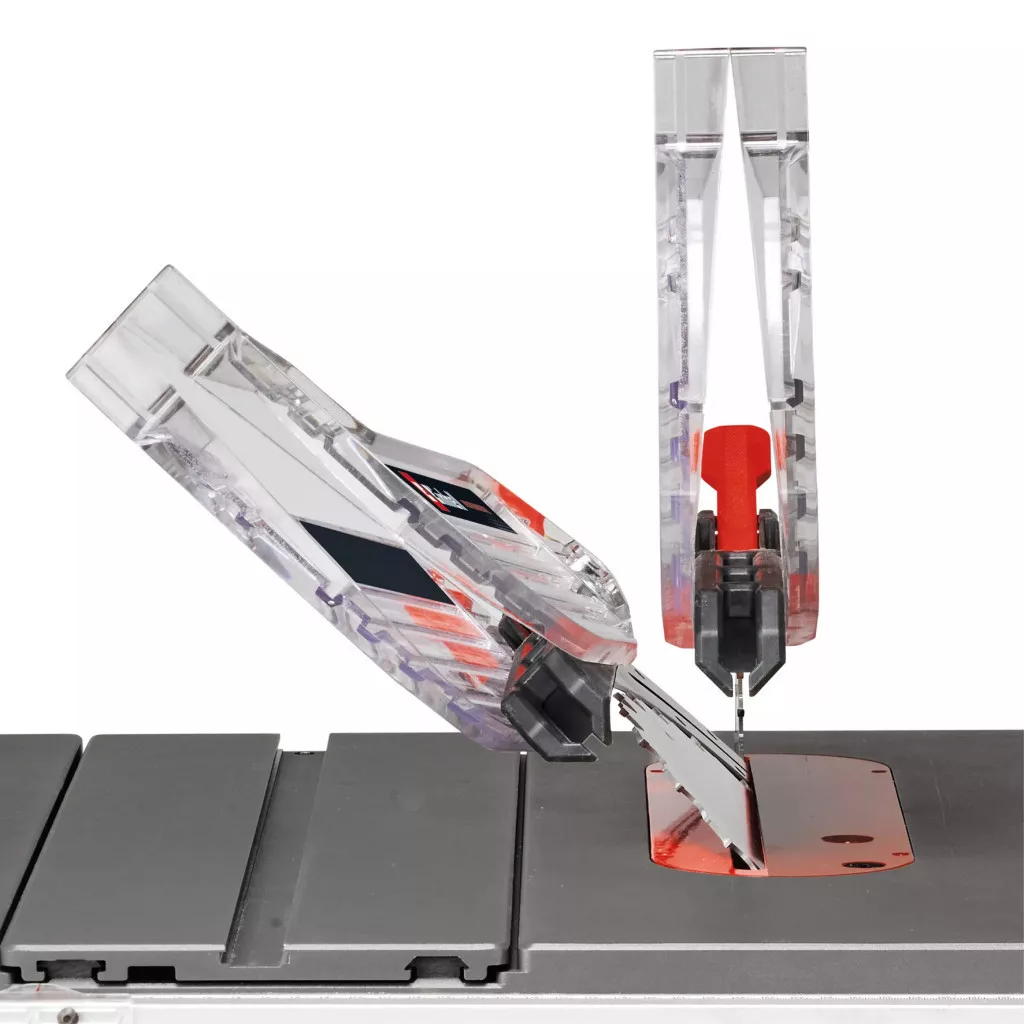 Az Einhell Professional TP-CC 10 T tolóasztalos asztali körfűrésze nem hiányozhat egyetlen műhelyből sem! A sima futású tolószánnak köszönhetően még nagyobb munkadarabokat is precízen és könnyedén elvághat a fűrésszel. Ha fával dolgozik, akkor a tökéletes végeredményt a 2000 W teljesítmény és a 254 mm átmérőjű, keményfémlapkás körfűrészlap garantálják. Mindegy, hogy rétegelt falemezeket vagy paneleket kell méretre vágnia, esetleg gerendákat és deszkákat kell elfűrészelnie: az asztali körfűrész a 85 mm-es vágási magasságnak és a 45°-ban dönthető és állítható magasságú fűrészlapnak köszönhetően szinte bármilyen feladattal megbirkózik. Az állítható magasságú asztalbetéttel ellátott öntött alumínium munkaasztal stabil, vízszintes felületet biztosít. A párhuzamos ütköző két pozícióban szerelhető fel mindkét oldalon. A jobb oldalon két különböző helyzetben rögzíthető, és a forgatógomb segítségével pontosan beállítható. Az összecsukható kialakításnak köszönhetően asztalhosszabbításként is használható, illetve, keskeny vágások esetén közvetlenül a fűrészlap mellé rögzíthető. A masszív alumínium szögütközőt 15°-os beosztással tervezték. A szögütköző rögzíthető a tolóasztalon, és segítségével a szükséges szögben tudja tolni a munkadarabot. A kétrészes fűrészlapvédelmet úgy alakították ki, hogy mindig láthassa a vágandó területet, és mindezt úgy, hogy közben maximális biztonságot szavatoljon. Ha tisztán szeretné tartani a munkaterületet, az elszívóadapter segítségével bármelyik száraz-nedves Einhell porszívót csatlakoztathatja a készülékhez. A lágyindítási funkció maximális biztonságot garantál, hiszen óvja a motort és a biztosítékokat is. A gumírozott lábakkal ellátott masszív acélvázszerkezet biztonságos, alacsony rezgésszintű használatot biztosít, a számos hordozófogantyú, a kábelrögzítő és az összes többi tartozék és tartó megkönnyítik a szállítást.
