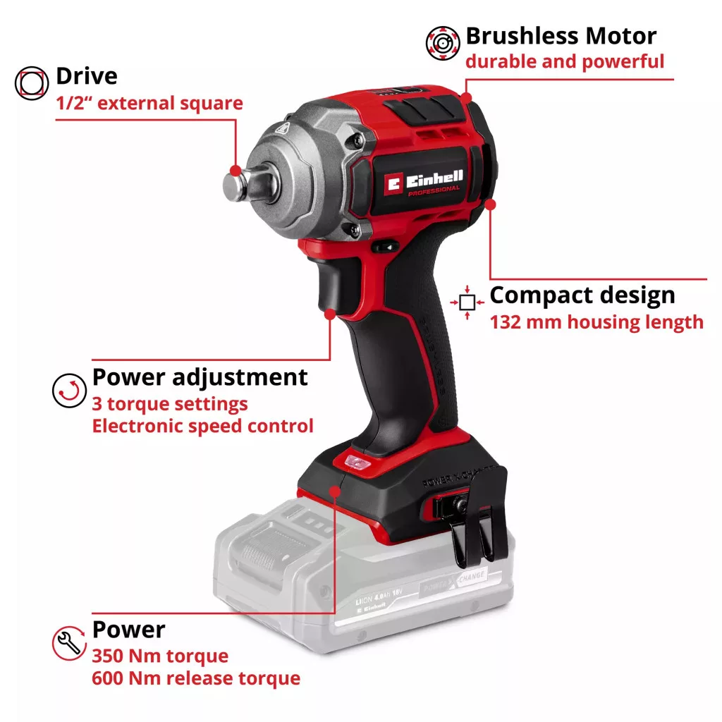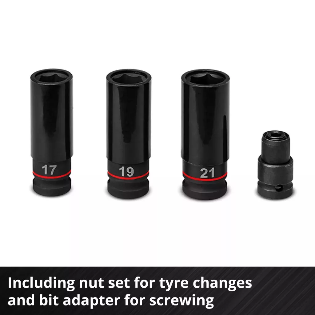 Az Einhell Professional TP-CW 18/350-C Li BL-Solo akkus ütvecsavarozó egy hatékony szerszám az egyszerű gumiabroncscseréhez és a hatékony csavarozási munkákhoz. A Power X-Change termékcsalád tagjaként a rendszersorozat bármely akkumulátorával vagy töltővel kombinálva használható. A szerszámot egy Einhell szénkefe nélküli motor hajtja. Ez a szénkefe nélküli motor nagyobb teljesítményt és hosszabb üzemidőt biztosít, mint egy hagyományos szénkefés motor. Online regisztráció után 10 év garancia jár a szénkefe nélküli motorra. Kompakt, könnyű és mégis nagy teljesítményű: Az Einhell Professional akkus ütvecsavarozót úgy tervezték, hogy körülbelül 20%-kal kompaktabb legyen a hasonló ütvecsavarozókhoz képest. Ezáltal a lehető legrugalmasabban és legkényelmesebben használható. Erőteljes ütőmechanizmusának köszönhetően a csavarhúzó ideális kerékcsavarok meglazításához és meghúzásához. A professzionális ütvecsavarozó 1⁄2"-os (12,7 mm-es) külső négyszögletes bitfejjel rendelkezik, és maximálisan 350 Nm nyomatékot biztosít. A maximális kioldási nyomaték 600 Nm. A nyomatékszint és a fordulatszám három beállítással az adott anyaghoz igazítható. A kiegészítő automatikus leállítás beállítással tökéletesen meghúzhatja a kerékcsavarokat és anyákat, mivel az ütvecsavarozó max. kb. 100 Nm-nél megáll, hogy megakadályozza a túlhúzást, és lehetővé tegye a nyomatékkulccsal történő meghúzást. Az automatikus leállítás beállítással a készülék automatikusan leáll a csavarok kicsavarásakor, amint már nem érzékel ellenállást. A mellékelt belső hatszögletű bitadapterrel gond nélkül becsavarhatja a nagy, hosszú facsavarokat. A beépített LED-lámpa mindig optimális láthatóságot biztosít. Annak érdekében, hogy munka közben mindkét keze gyorsan szabad legyen, egy övcsipesz is tartozik hozzá az akkus ütvecsavarozó egyszerű ideiglenes tárolásához. A gumiabroncsok cseréjéhez a leggyakoribb méretű dugókulcsokat tartalmazó anyakészlet tartozik. A szerszám nem tartalmaz akkumulátort vagy töltőt; ezek külön kaphatók.