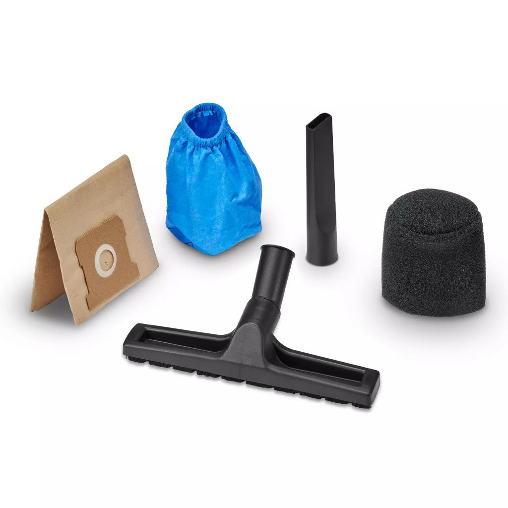Az Einhell TC-VC 1240 S nedves/száraz porszívó praktikus segítőtárs mindenféle tisztítási feladathoz a műhelyben és a garázsban. 950 W teljesítményével és 180 mbar szívókapacitásával megbízhatóan eltávolítja a port, a szennyeződéseket és még a folyadékokat is számos felületről. A fúvócsatlakozójának köszönhetően még a nehezen elérhető helyek is könnyen tisztíthatók. A nedves/száraz porszívó 12 literes rozsdamentes acél tartállyal van felszerelve. Az 1,5 m hosszú műanyag szívótömlő (Ø 36 mm) és a 3 részes műanyag szívócső széles tisztítási tartományt biztosít. A 2,5 m hosszú tápkábellel ez a hatótávolság akár 4 méterre is kiterjeszthető. A tároláshoz a tápkábelt egyszerűen feltekerheti a praktikus hordozófogantyúra. Négy masszív forgókerékkel ez a nedves/száraz porszívó rendkívül mobil. A porszívóhoz tartozik egy réstisztító fej a keskeny átjárók tisztításához, valamint egy nagy kombinált fej a szőnyegek és kemény padlók tisztításához. Tartalmaz továbbá egy habszűrőt a nedves tisztításhoz, valamint egy-egy szennyeződésgyűjtő zsákot és egy szűrőzsákot a száraz szíváshoz.