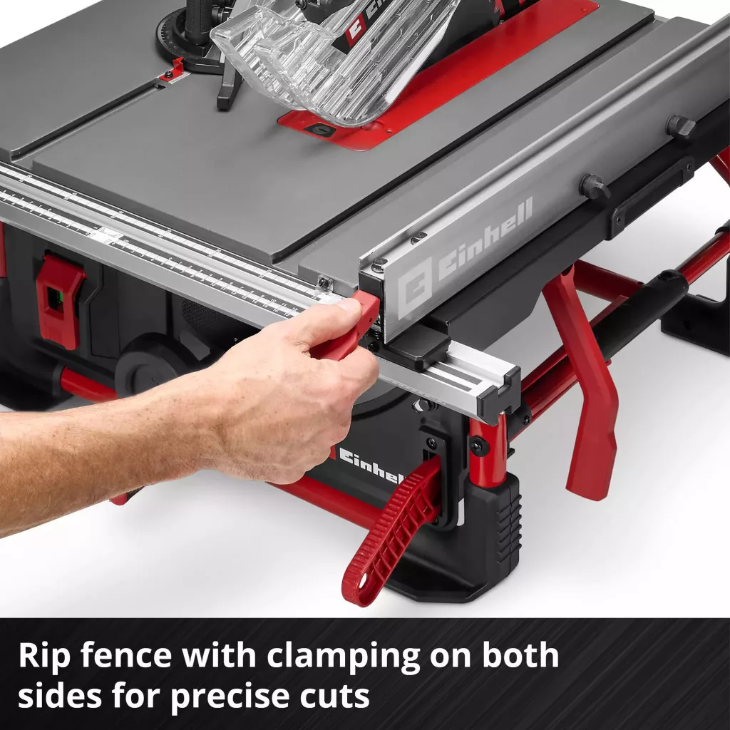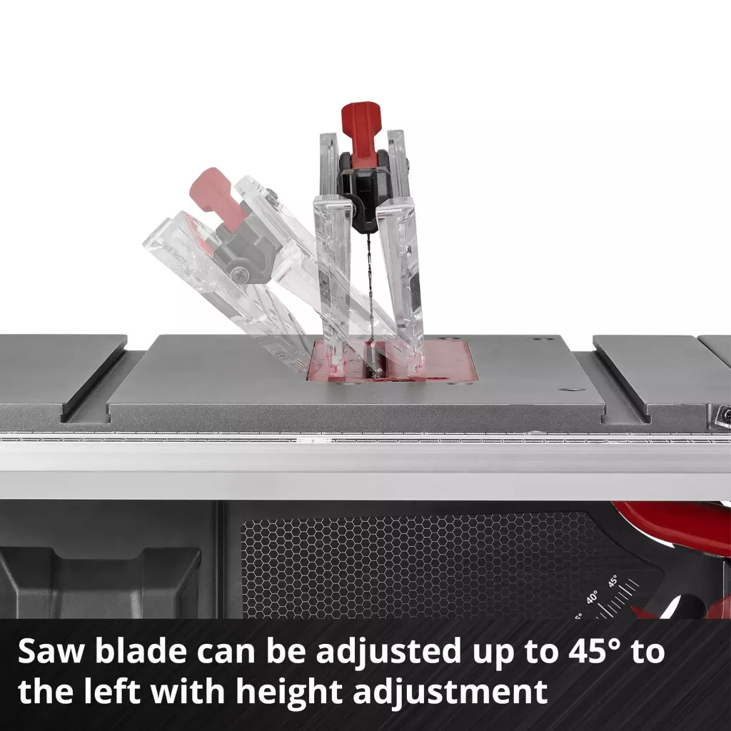 Az Einhell TE-TS 10 T asztali körfűrész gyors és tiszta vágásokat biztosít minden otthoni, műhelyi és garázsbeli feladathoz. Akár rétegelt lemezt vagy paneleket kell méretre vágnia, akár gerendákat és deszkákat kell rövidítenie és vágnia: Az elforgatható fűrészlapnak (akár 45°-ban) és a fokozatmentes magasságállításnak (max. 89 mm-es vágási magasság 90°-os vágási szöggel) köszönhetően ez az asztali körfűrész bármilyen feladattal megbirkózik. A túlterhelés elleni védelem, a lágyindítás funkció és az újraindítás-gátlás biztosítja a munkabiztonságot és védi a motort a károsodástól. A masszív és könnyű alumíniumból készült főasztal egyszerű és precíz vágásokat tesz lehetővé. A fűrészasztal jobb oldalán egy asztalhosszabbító húzható ki 660 mm hosszú munkadarabokhoz. A párhuzamos ütköző egyenes és precíz vágásokat biztosít. A tolópálca biztonságosan vezeti a munkadarabot a fűrészlapon keresztül, így biztosítva a biztonságos kezelést. A praktikus szögütköző pontos és precíz gérvágást tesz lehetővé -60° és +60° között. A ház és a Ø 36 mm-es szívócsövekhez való integrált porelszívó csatlakozó biztosítja, hogy a munkahelye mindig tiszta legyen. A kompakt kialakítás és az integrált fogantyúk megkönnyítik a szállítást. A házon találhatók a tartozékok és kábelek tartói.