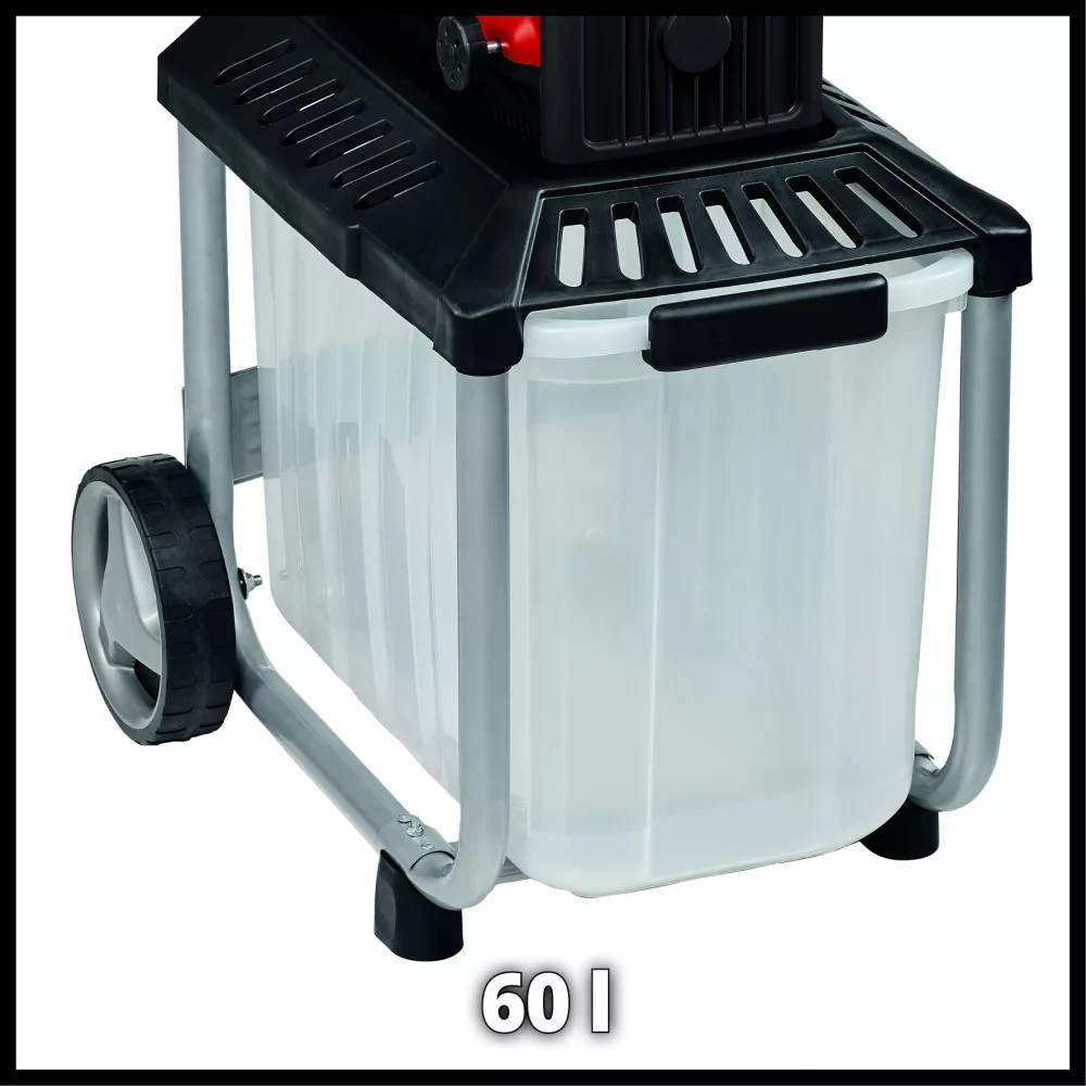 A GC-RS 60 CB csendes elektromos daráló egy robusztus és rendkívül nagy teljesítményű készülék, amellyel még a vastagabb és keményebb fa- vagy sövénynyesedéket, gallyakat, bozótot és cserjéket is felapríthatja – mindezt a munka jellegéhez képest halkan, és nagyobb mennyiségben. Az erős és tartós aprítóhenger behúzza a nyesedéket a nagy méretű aprítónyíláson keresztül. Az erős, kerekes állványnak és a praktikus fogantyúnak köszönhetően a készülék mozgatása rendkívül egyszerű. A forgásirányváltó-kapcsolóval megváltoztathatja a GC-RS 60 CB vágóhengerének forgásirányát; így gyorsan és fáradtság nélkül eltávolíthatja a felgyülemlett nyesedéket. A hőkioldó kapcsoló óvja a motort a túlterheléstől. Az átlátszó gyűjtőedényen található egy biztonsági kapcsoló, amely az edény eltávolításakor megszakítja az áramellátást, maximális biztonságot nyújtva ezzel. Az újraindulás elleni védelem még nagyobb biztonságot nyújt.