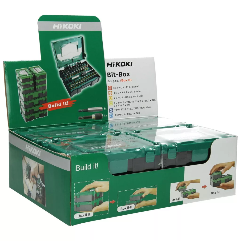 Hikoki 40030024 Bit-készlet, 1/4''-os, 60 darabos, 25 mm, mágneses bittartóval és mágneses bittartó