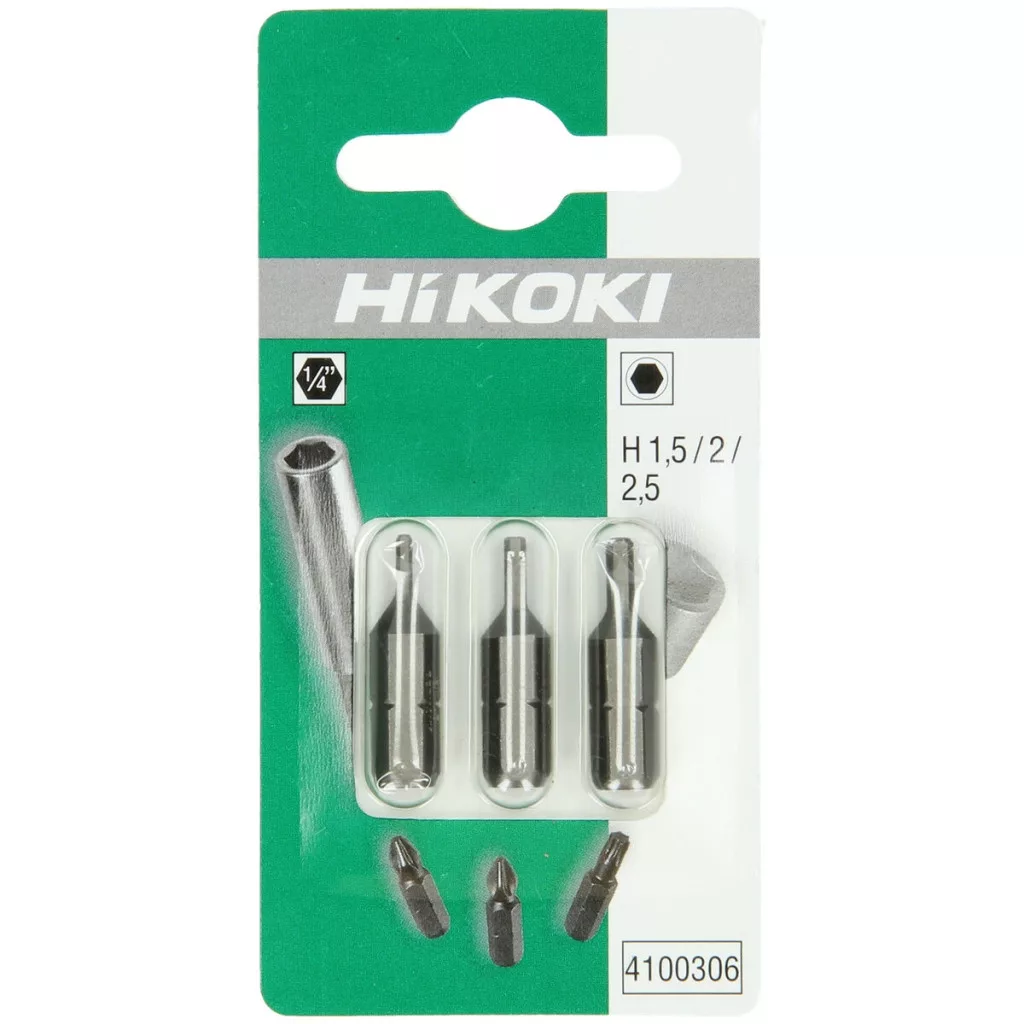 Hikoki 4100306 3 bit, 1/4” HEX 1,5 / 2 / 2,5, 25