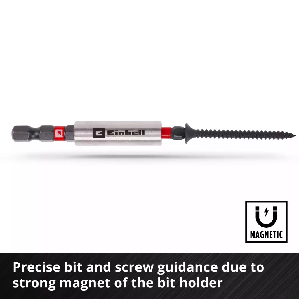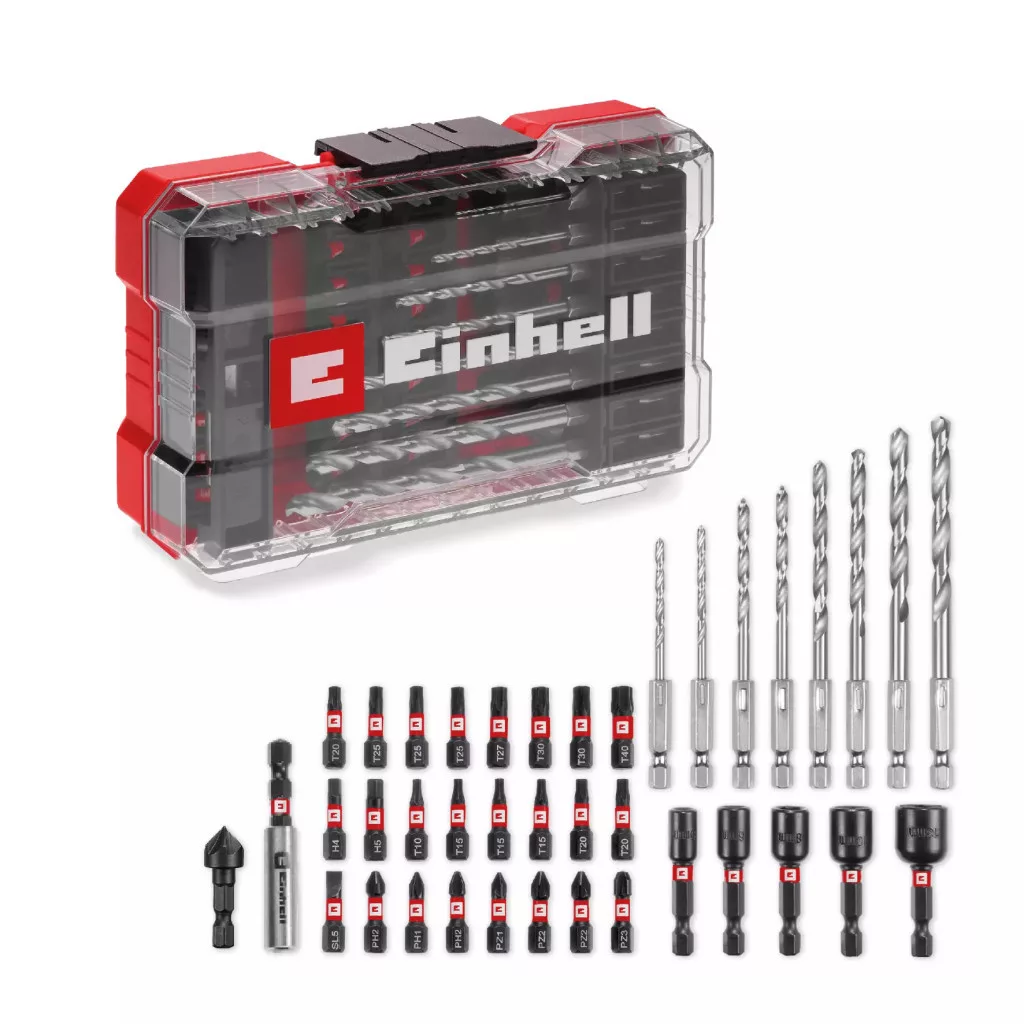 Az Einhell 39 darabos M-Case készlete fémfúrókat, ütésálló biteket, dugókulcsokat, bittartót és süllyesztőket egyesít egy olyan készletben, amely optimálisan a szakemberek és a barkácsolók igényeire szabott. A 24 db, 25 mm-es bit PH1 / 2x PH2 / PZ1 / 2x PZ2 / PZ3 / T10 / 3x T15 / 3x T20 / 3x T25 / T27 / 2x T30 / T40 / SL5 / H4 / H5 méretekkel ellenálló, mangánfoszfátozott S2 acélból készült, és C 6.3 szárral rendelkezik. Kifejezetten a hosszú élettartamra tervezték őket igényes munkakörülmények között. A bitkészlet 8 db fémfúrót is tartalmaz 2 / 2,5 / 3 / 3,5 / 4 / 5 / 6 / 6,5 mm átmérőben, nagy szilárdságú HSS 4241 acélból. Az E 6,3-as szárú fémfúrók 135°-os hasított hegyű csúccsal és hengerelt N típusú spirállal rendelkeznek a különféle fémek hatékony fúrásához. A fémfúrókészletben található öt hatszögletű dugókulcs 5 / 6 / 8 / 10 / 13 mm méretben szintén robusztus, mangán-foszfátozott CV acélból készült. Úgy tervezték őket, hogy kivételes stabilitást biztosítsanak nagy nyomatékok mellett is. A dugókulcskészletet egy 60 mm hosszú, ütésálló bittartó egészíti ki rozsdamentes acél hüvellyel és erős mágnessel. A szénacélból készült bittartó E 6,3-as szára nagy stabilitást és kiváló erőátvitelt tesz lehetővé. Ezenkívül a bitkészlet egy 12 mm-es süllyesztőt is tartalmaz E 6,3-as szárral és hat vágóéllel. A szerszámok biztonságos tárolása és könnyű elhelyezése érdekében az Einhell készlet egy praktikus, átlátszó fedéllel ellátott dobozban található. A doboz robusztus automata rögzítőkapocs-zárja biztosítja, hogy a tartalom mindig biztonságosan el legyen helyezve. Így a tárolódoboz rendezett megoldást kínál a szerszámok tárolására és szállítására. Az Einhell 39 darabos szerszámkészletét kifejezetten (ütve)akkus csavarozókhoz és fúrógépekhez tervezték. Biztosítja, hogy minden szükséges szerszám mindig kéznél legyen a fémben végzett hatékony fúrási és csavarozási munkákhoz.
