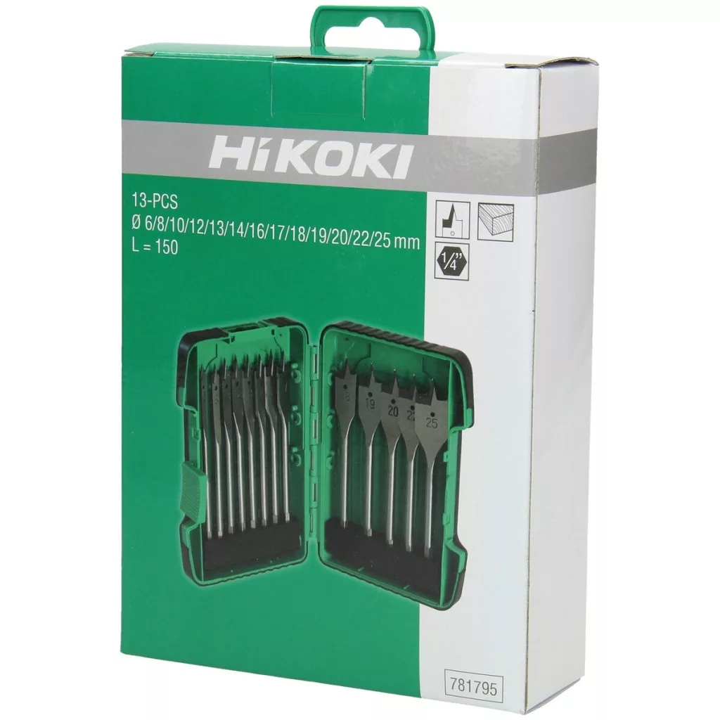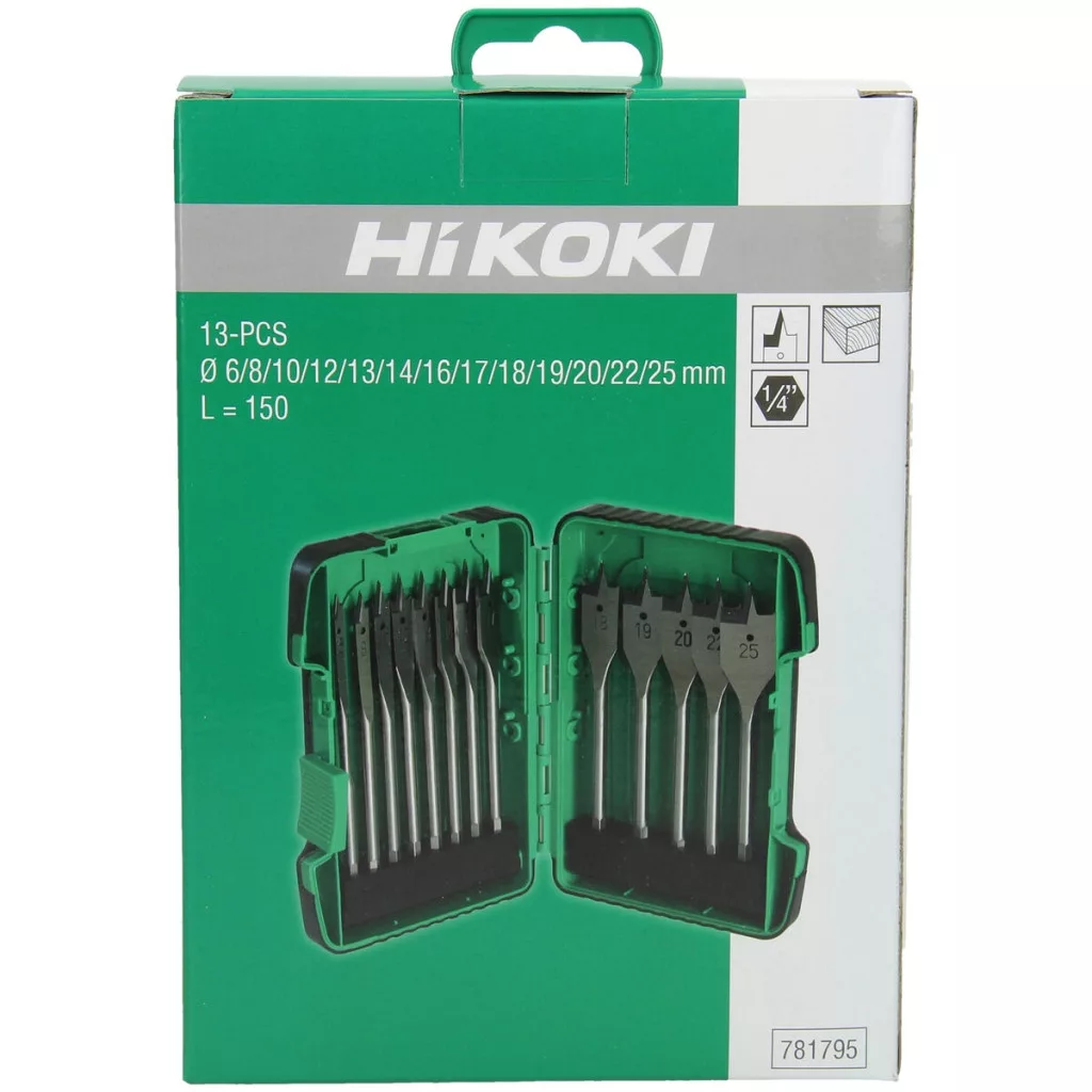 Hikoki 781795 Lapos fafúró szár készlet, (13 darabos) 6/8/10/12/13/14/16/17/18/19/20/22/25 x 150